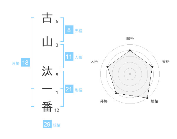古山 汰一番さんを姓名の画数から五運を鑑定