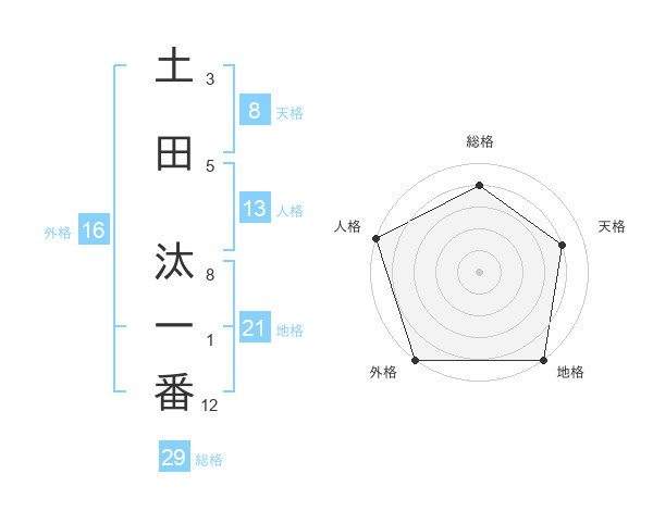 土田 汰一番さんを姓名の画数から五運を鑑定