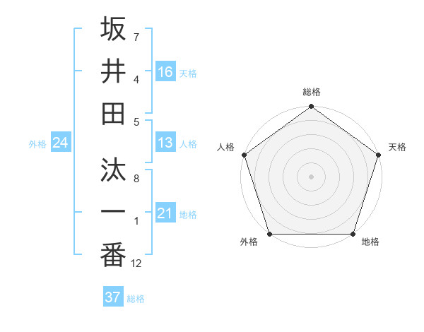 坂井田 汰一番さんを姓名の画数から五運を鑑定