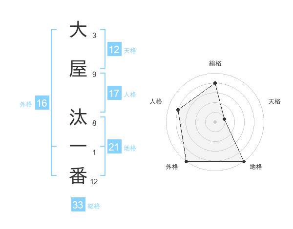 大屋 汰一番さんの総格は33画の4点!