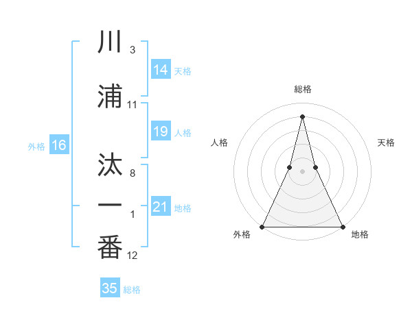 川浦 汰一番さんの外格は16画の5点!
