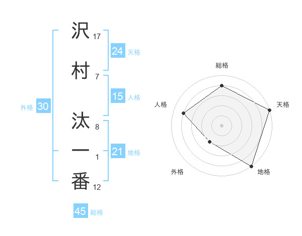 沢村 汰一番さんの総格は45画の4点!