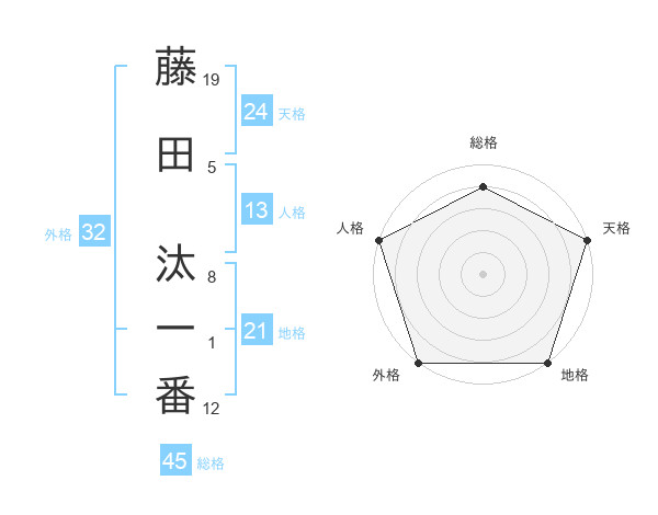 藤田 汰一番さんの総格は45画の4点!