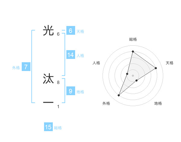 光 汰一さんの総格は15画の4点!
