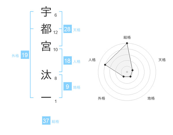 宇都宮 汰一さんを姓名の画数から五運を鑑定