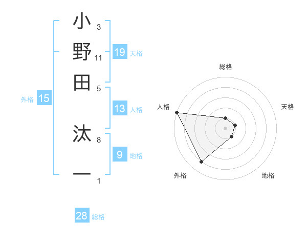 小野田 汰一さんを姓名の画数から五運を鑑定