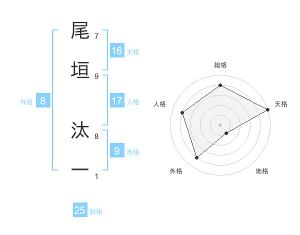 尾垣 汰一さんを姓名の画数から五運を鑑定