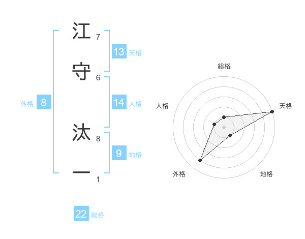 江守 汰一さんの総格は22画の1点!
