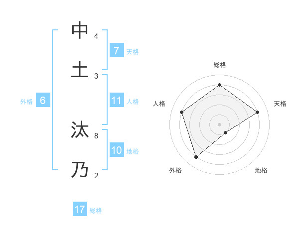 中土 汰乃さんを姓名の画数から五運を鑑定