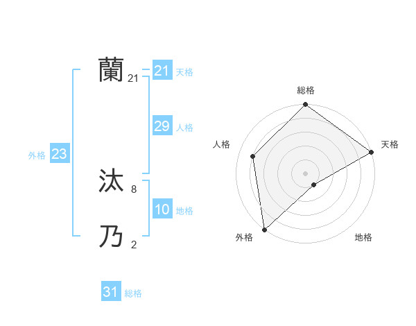 蘭 汰乃さんの天格は21画の5点!