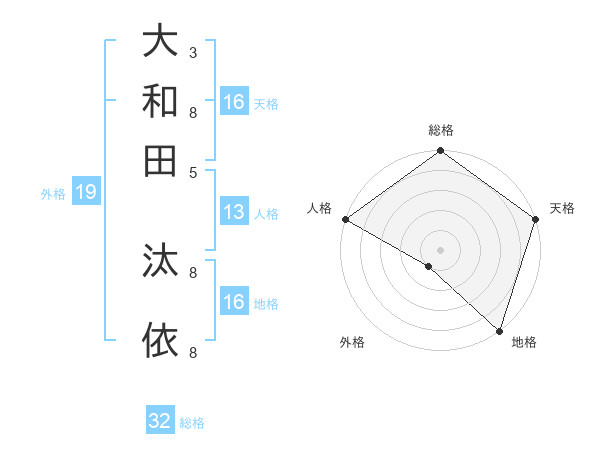 大和田 汰依さんを姓名の画数から五運を鑑定
