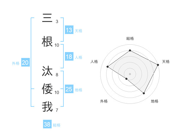 三根 汰倭我さんを姓名の画数から五運を鑑定