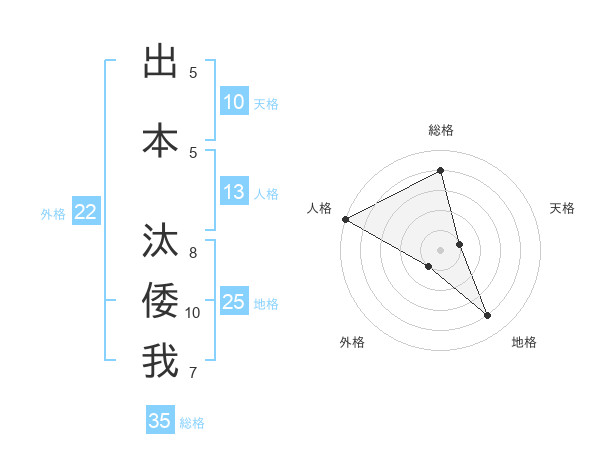 出本 汰倭我さんの地格は25画の4点!