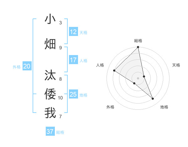 小畑 汰倭我さんを姓名の画数から五運を鑑定