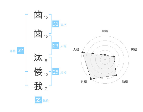 歯歯 汰倭我さんの総格は55画の1点!