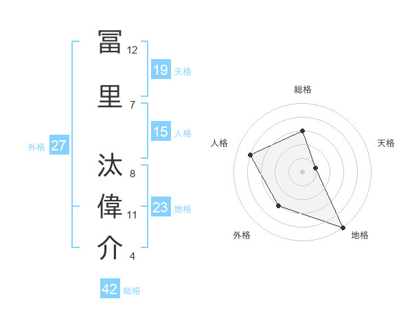 冨里 汰偉介さんを姓名の画数から五運を鑑定