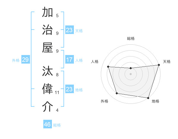 加治屋 汰偉介さんの天格は23画の5点