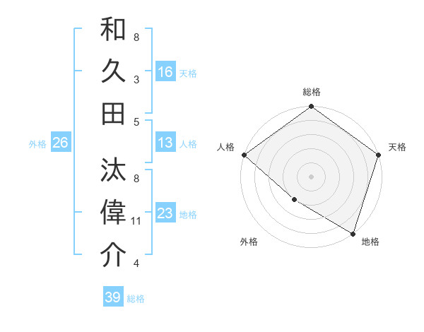 和久田 汰偉介さんを姓名の画数から五運を鑑定