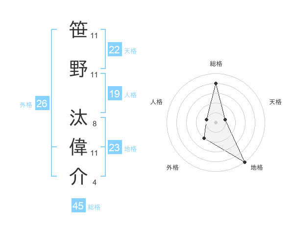 笹野 汰偉介さんを姓名の画数から五運を鑑定