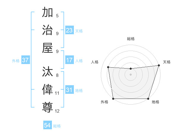 加治屋 汰偉尊さんを姓名の画数から五運を鑑定