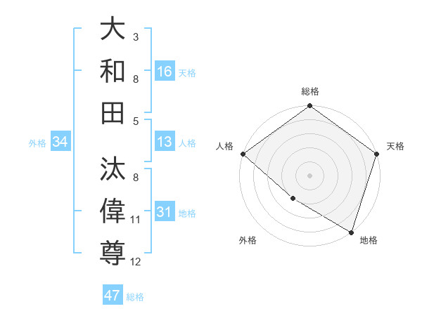 大和田 汰偉尊さんを姓名の画数から五運を鑑定