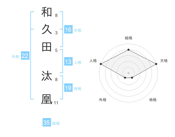 和久田 汰凰さんを姓名の画数から五運を鑑定