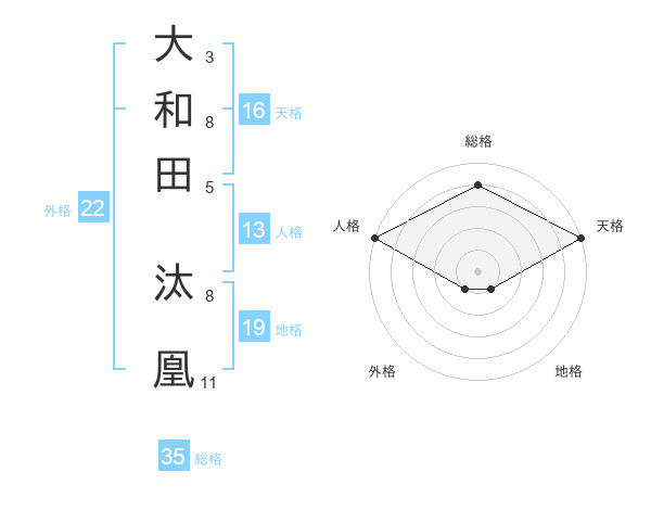 大和田 汰凰さんを姓名の画数から五運を鑑定
