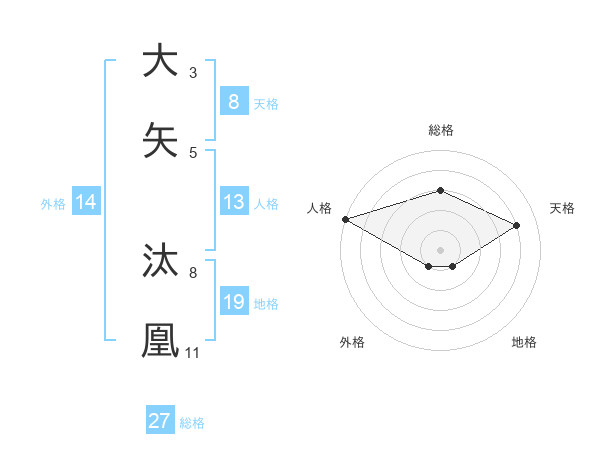 大矢 汰凰さんを姓名の画数から五運を鑑定