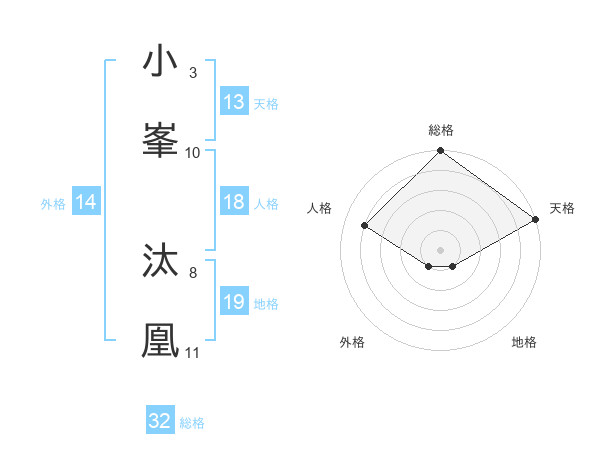 小峯 汰凰さんを姓名の画数から五運を鑑定