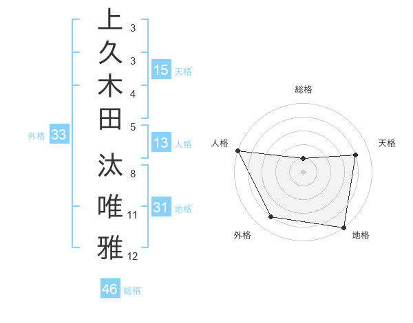上久木田 汰唯雅さんを姓名の画数から五運を鑑定