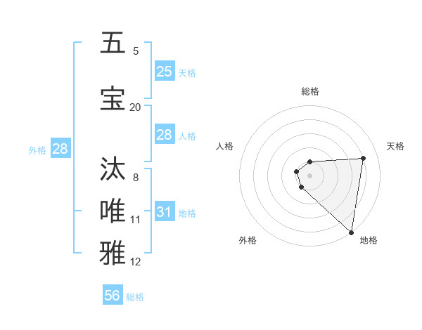 五宝 汰唯雅さんを姓名の画数から五運を鑑定