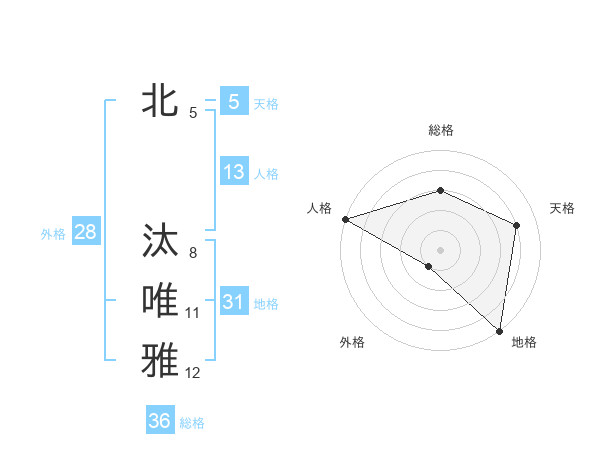 北 汰唯雅さんの地格は31画の5点!