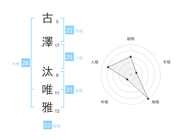 古澤 汰唯雅さんの総格は53画の3点!