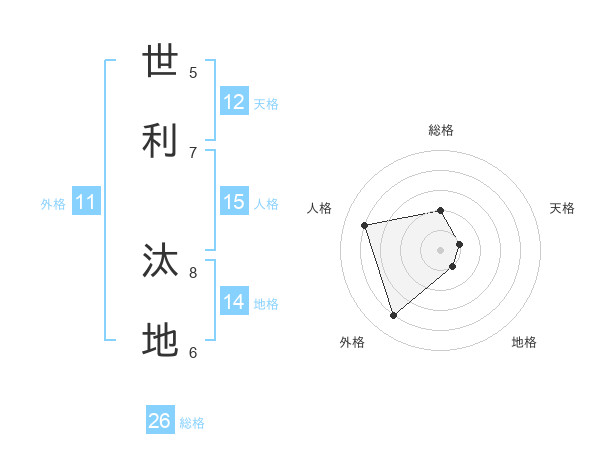 世利 汰地さんの総格は26画の2点!