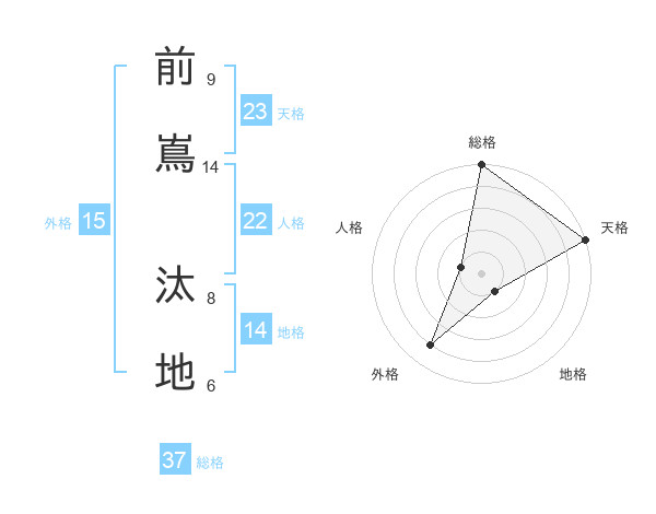 前嶌 汰地さんを姓名の画数から五運を鑑定