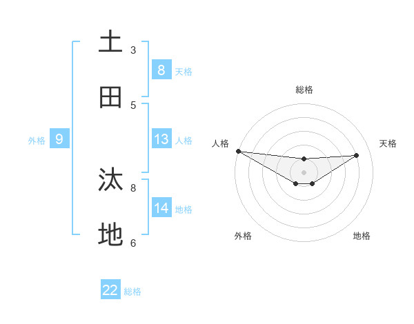土田 汰地さんの総格は22画の1点!