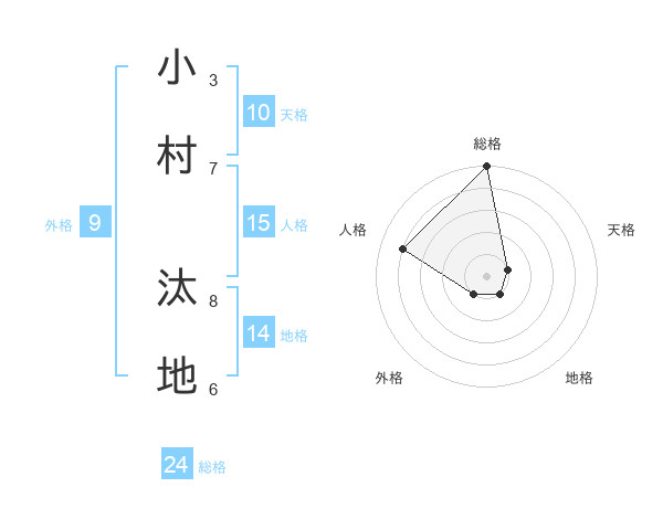 小村 汰地さんの総格は24画の5点!