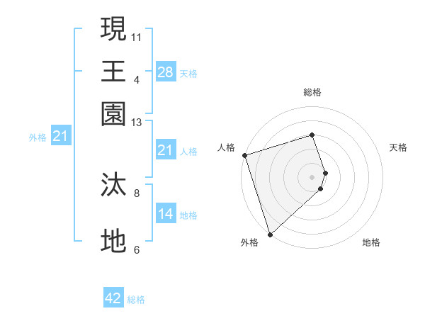 現王園 汰地さんを姓名の画数から五運を鑑定