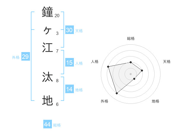 鐘ヶ江 汰地さんの総格は44画の2点!