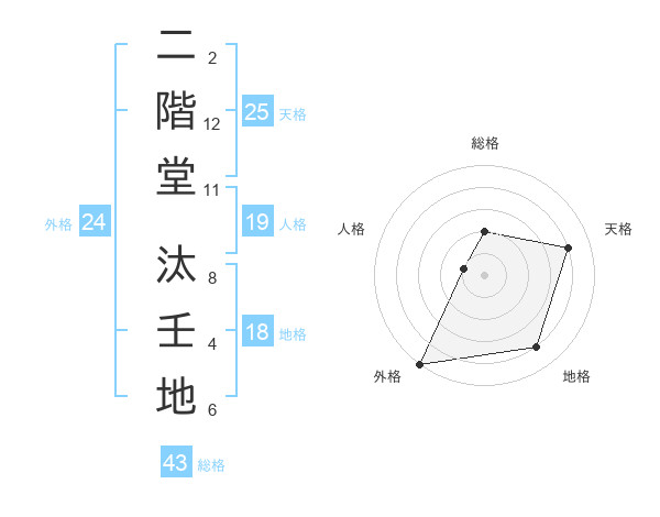 二階堂 汰壬地さんを姓名の画数から五運を鑑定