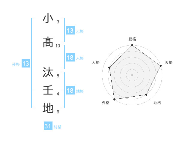 小髙 汰壬地さんを姓名の画数から五運を鑑定