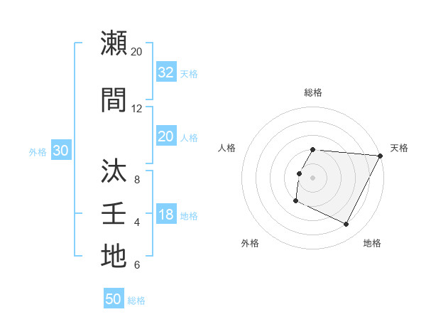 瀬間 汰壬地さんの総格は50画の2点!