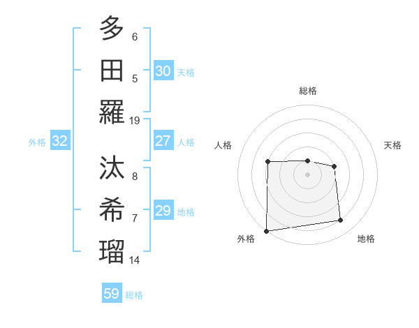多田羅 汰希瑠さんを姓名の画数から五運を鑑定