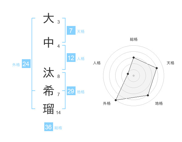 大中 汰希瑠さんを姓名の画数から五運を鑑定