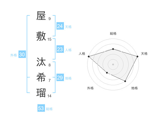 屋敷 汰希瑠さんを姓名の画数から五運を鑑定