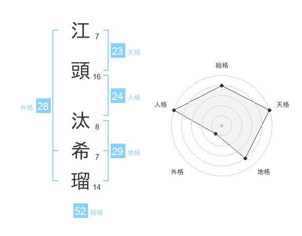 江頭 汰希瑠さんの総格は52画の4点!