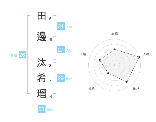 田邊 汰希瑠さんを姓名の画数から五運を鑑定