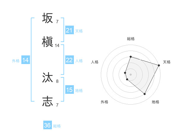 坂槇 汰志さんを姓名の画数から五運を鑑定