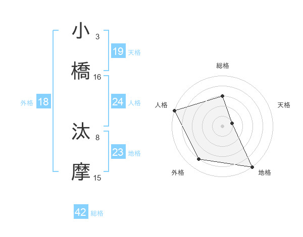 小橋 汰摩さんを姓名の画数から五運を鑑定