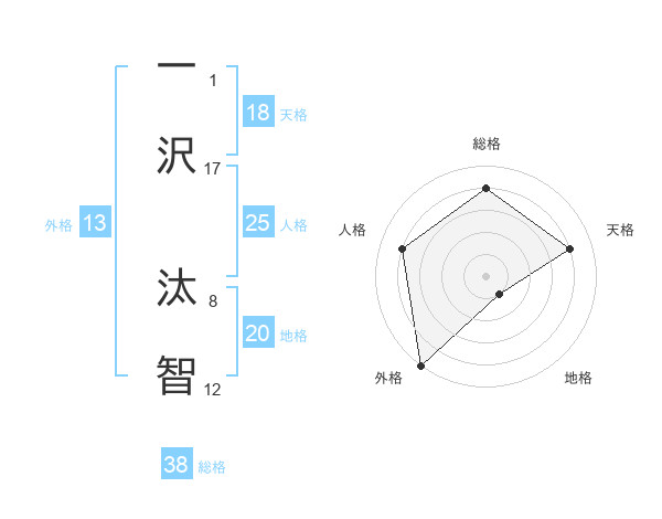 一沢 汰智さんの総格は38画の4点!